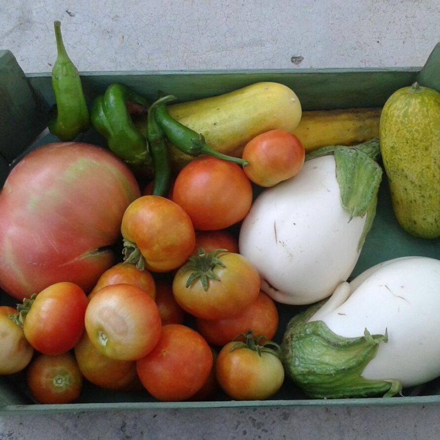 - Bekijken: Uitzicht op de moestuin en het dennenbos